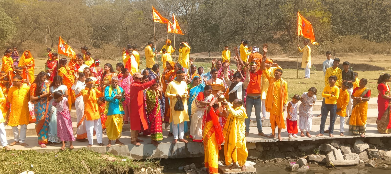 कलश यात्रा भाल्कोरिया गांव से प्रारंभ होकर बैजना स्थित पशुई नदी तक पहुंची, जहां वैदिक मंत्रोच्चार के बीच श्रद्धालुओं ने कलश में पवित्र जल भरा। महिलाओं ने सिर पर कलश रखकर पूरे उत्साह और श्रद्धा के साथ यात्रा में हिस्सा लिया।