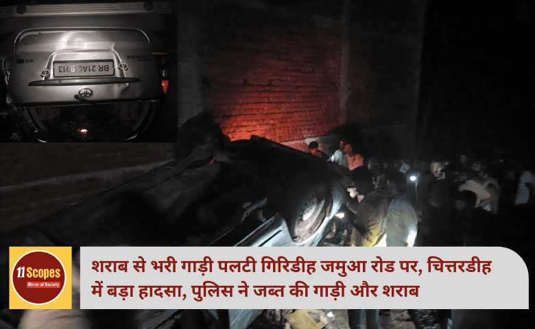 शराब से भरी गाड़ी पलटी गिरिडीह जमुआ रोड पर, चित्तरडीह में बड़ा हादसा, पुलिस ने जब्त की गाड़ी और शराब
