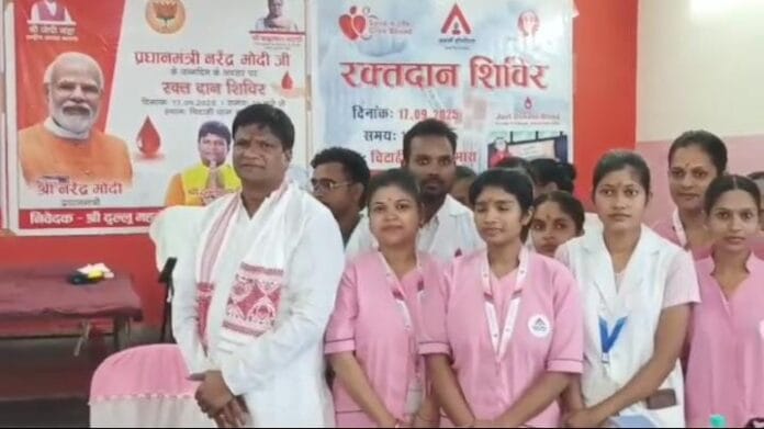 बाघमारा: भारत के यशस्वी प्रधानमंत्री नरेन्द्र मोदी के 75 वें जन्मदिन के अवसर पर बाघमारा के चिटाही धाम स्थित धर्मशाला मे रक्तदान शिविर का आयोजन किया गया।