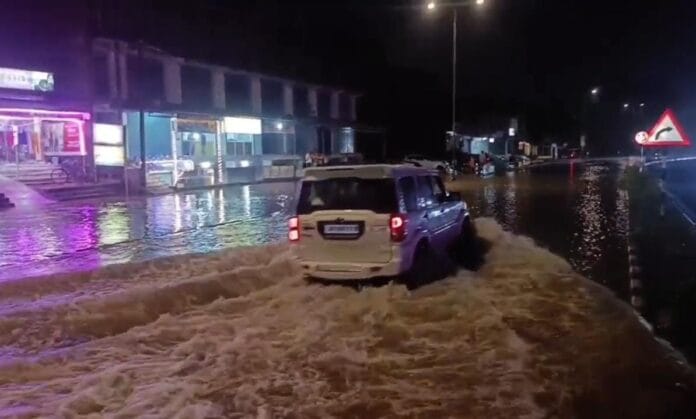 धनबाद: कोयलांचल में गुरुवार देर शाम चक्रवाती तूफान मोंथा के प्रभाव में धनबाद शहर में भारी बारिश हुई।कुछ घंटों की बारिश ने शहर के जनजीवन को अस्त-व्यस्त कर दिया।करोड़ों की लागत से बनी आठ लेन सड़क जल निकासी की कमी के कारण जलभराव का शिकार हो गई।विशेष रूप से विनोद बिहारी चौक के पास सड़क पर इतना पानी भर गया कि दृश्य किसी नदी जैसा हो गया।दोपहिया और चारपहिया वाहन चालकों को भारी परेशानी हुई; कई बाइक और ई-रिक्शा फंस गए।