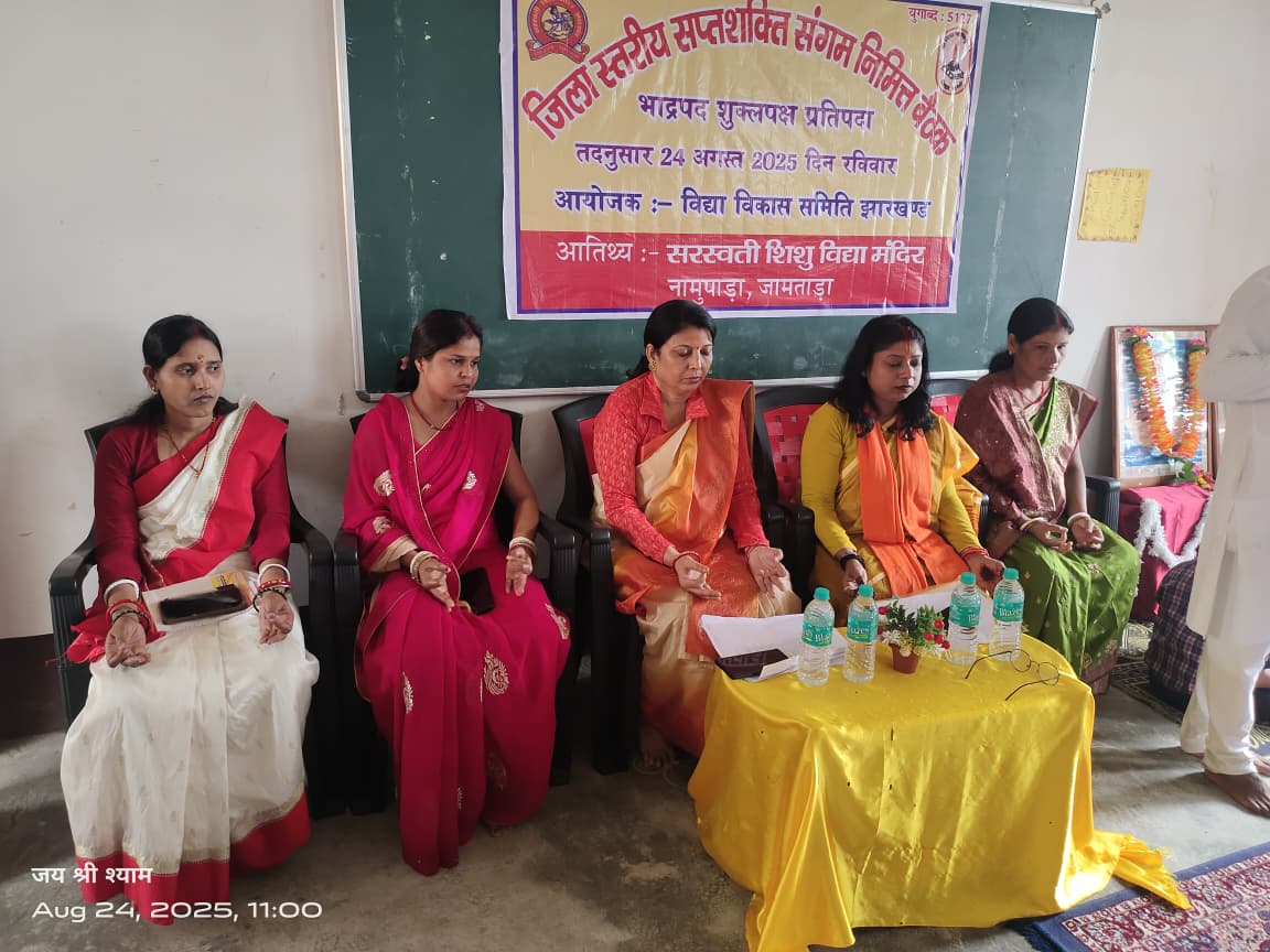 जामताड़ा:जामताड़ा के सरस्वती शिशु मंदिर नामूपाड़ा में जिला स्तरीय सप्तशती संगम कार्यशाला उत्साह और उल्लास के साथ सफलतापूर्वक आयोजित हुई जिसमें जिले के विभिन्न सरस्वती शिशु मंदिर विद्यालयों की महिला आचार्याओं समेत कुल 56 लोगों की उपस्थिति रही इस कार्यशाला में 41 बहनों के साथ 7 प्रधानाचार्य विद्यालय प्रबंधकारिणी समिति के अध्यक्ष सचिव और सह सचिव के अलावा प्रांत की सह संयोजिका किरण राय जिला संयोजिका आभा आर्या और सह संयोजिका अपर्णा झा विशेष रूप से मौजूद रहीं