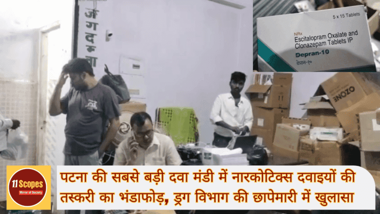 पटना (बिहार) – बिहार की राजधानी पटना के गोविंद मिश्रा रोड स्थित राज्य की सबसे बड़ी दवा मंडी में नारकोटिक्स (नशे की दवाइयां) की बिक्री का बड़ा खुलासा हुआ है। ड्रग डिपार्टमेंट की छापेमारी में यह बात सामने आई कि प्रतिबंधित नशीली दवाइयों की बड़े पैमाने पर खुदरा बिक्री की जा रही थी, और इन्हें राज्य के अन्य जिलों में भी भेजा जा रहा था।