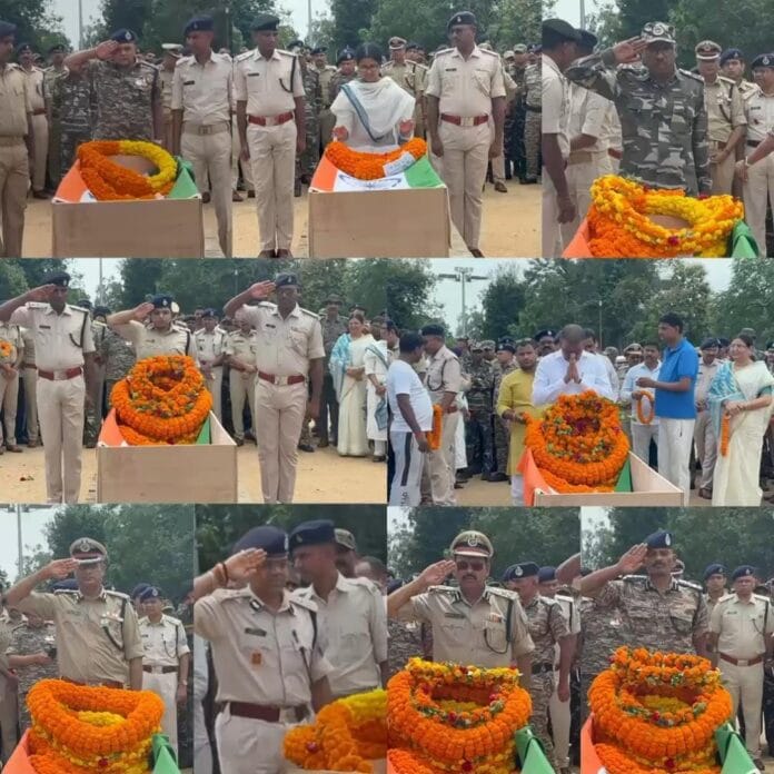 पलामू(JHARKHAND):मनातू के केदल जंगल में टीएसपीसी उग्रवादियों से मुठभेड़ में शहीद हुए संतन मेहता और सुनील राम को आज मेदिनीनगर पुलिस लाइन में राजकीय सम्मान के साथ अंतिम विदाई दी गई।