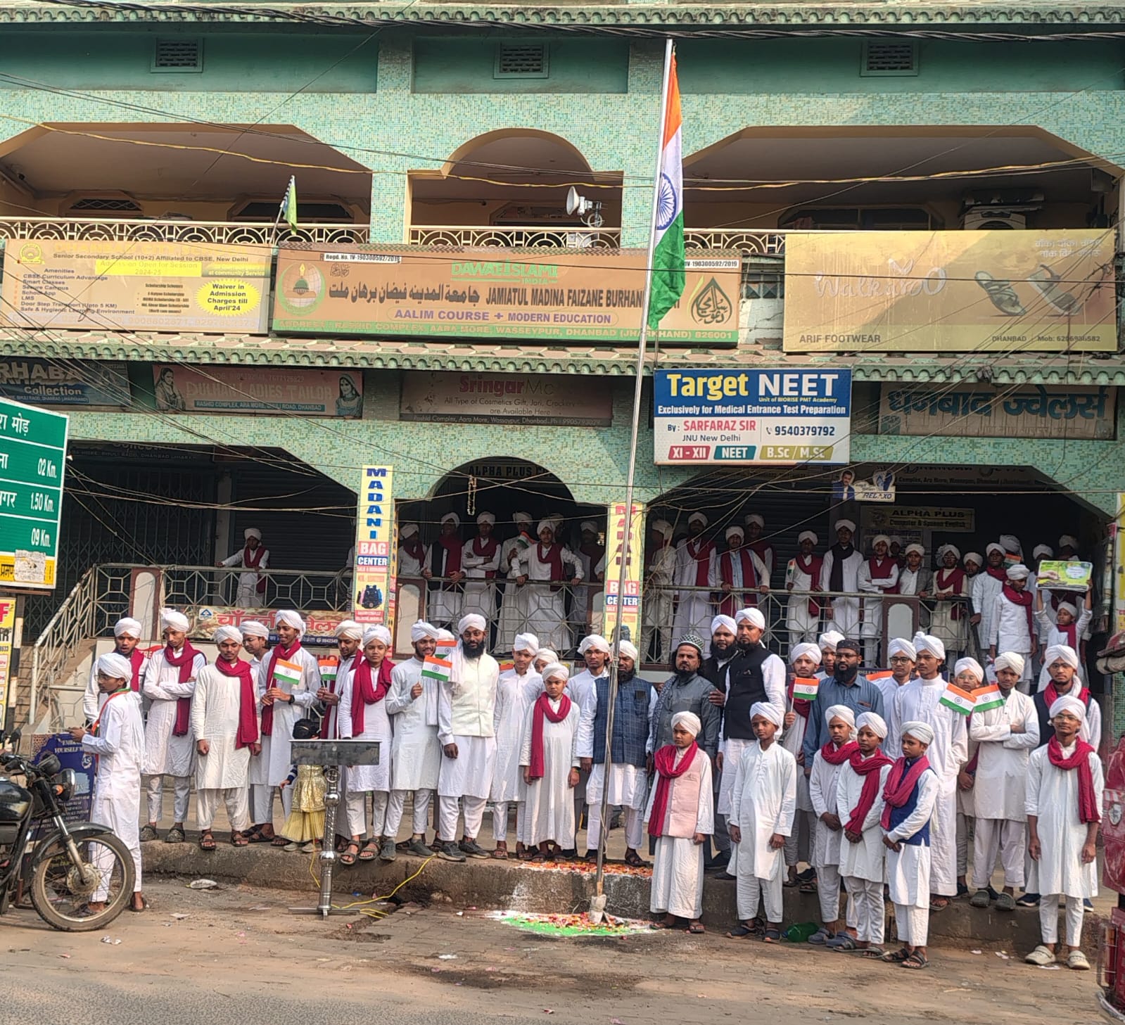 धनबाद: यौम-ए-जमहूरिया (गणतंत्र दिवस) के अवसर पर तंजीम-ए-अहल-ए-सुन्नत एवं जामिया-तुल-मदीना (दावत-ए-इस्लामी) धनबाद के तत्वावधान में 26 जनवरी को आरा मोड़, वासेपुर में सुबह 9 बजे ध्वजारोहण कार्यक्रम का आयोजन किया गया।