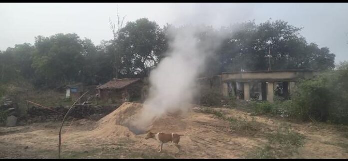 झरिया: सुदामडीह थाना क्षेत्र के सुदामडीह बस्ती में तेज आवाज के साथ जमीन में गोफ बन गया एवं गैस रिसाव लगातार जारी है।इससे आसपास के लोगो मे दहशत फैल गया।शुक्रवार को बताया गया कि सुदामडीह थाना से मात्र 20/25 फिट की दूरी पर रात्रि 8:00 बजे क़रीब तेज आवाज के साथ 10 फिट चौड़ा गोफ़ बने है जहां से भारी मात्रा में गैस रिसाव होने से पूरे थाना बस्ती में हड़कंप मच गया।किसी अनहोनी की आशंका से भयभीत बस्ती के लोग अपने घरों से बाहर निकल गए जबकि गोफ़ का दायरा और गैस रिसाव धीरे धीरे बढ़ रही है वहीं मामले की जानकारी मिलते ही थाना बस्ती के गौतम रवानी घटना स्थल पर पहुंच मामले की जानकारी स्थानीय सुदामडीह प्रबंधन को दिया।बस्ती के राज कुमार रवानी, राजेश रवाना, अनिल रवानी सहित अन्य लोगों ने बताया कि गुरुवार को करीब वस्ति से सटे पूर्वी झरिया क्षेत्र का सुदामडीह फायर पेंच विस्तार आउट सोर्सिंग परियोजना चल रही है जहां करीब 2 से 2.30 बजे ब्लास्टिंग किया गया तब तक तो ठीक था परन्तु उसके एक दो घंटा के अंदर ही हम लोगो के वस्ति मात्र 20/25 फिट की दूरी पर तेज आवाज के साथ एक बड़ा सा गोफ़ बन गया जहां से भारी मात्रा में सफेद और काला धुंआ निकल रहा है, इससे वस्ति के लोगो में काफी भय है गोफ से निकलने वाली गैस के कारण वस्ति के बच्चो और बुजुर्गो को हल्की तकलीफ होनी भी लगी है।बस्ती के लोगो का कहना है पूर्वी झरिया क्षेत्र प्रबंधन से हम लोगो ने कई बार कहा है कि उक्त स्थान सुरक्षित नहीं है बस्ती में करीब 70/75 परिवार रहते हैं इन्हें उचित मुआवजा के साथ किसी सुरक्षित स्थान पर बसाया जाए, लेकिन प्रबंधन हम लोगो को सिर्फ आश्वाशन भर ही पिछले दो सालों से देती आ रही है, अब खतरा हम लोगो के बस्ती तक पहुंच गई हैं।जिस स्थान पर गैस रिसाव व गोफ़ बनी है उस स्थान से कुछ ही दूरी पर सुदामडीह थाना भी हैं।अगर गैस रिसाव और गोफ़ का दायरा बढ़ा तो वस्ति के साथ ही थाना पर भी खतरे की घंटी मंडराना स्वाभाविक है।