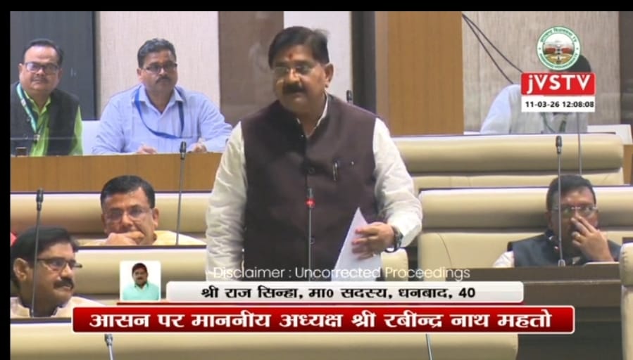 धनबाद: झारखंड विधानसभा के सचेतक सह धनबाद विधायक राज सिन्हा ने आज विधानसभा में धनबाद शहर से जुड़े कई महत्वपूर्ण जनहित के मुद्दों को जोरदार ढंग से उठाया। उन्होंने शहर के आधारभूत ढांचे, ट्रैफिक समस्या तथा पर्यावरण सुरक्षा से जुड़े विषयों पर सरकार का ध्यान आकर्षित किया।