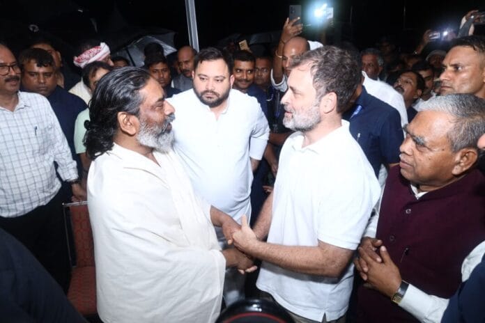 झारखंड: दिशोम गुरु शिबू सोरेन के अंतिम संस्कार में देश की शीर्ष राजनीतिक हस्तियों ने पहुंचकर उन्हें नम आंखों से श्रद्धांजलि दी। कांग्रेस के राष्ट्रीय अध्यक्ष मल्लिकार्जुन खड़गे, लोकसभा में नेता प्रतिपक्ष राहुल गांधी और बिहार के पूर्व डिप्टी CM तेजस्वी यादव ने नेमरा (गोला, रामगढ़) पहुंचकर दिवंगत पूर्व मुख्यमंत्री और राज्यसभा सांसद शिबू सोरेन को अपने श्रद्धा-सुमन अर्पित किए। उन्होंने CM हेमंत सोरेन एवं शोक संतप्त परिवार से मुलाकात कर संवेदनाएं व्यक्त कीं और ईश्वर से दिवंगत आत्मा की शांति एवं परिजनों को दुख की इस घड़ी में धैर्य प्रदान करने की प्रार्थना की। तीनों नेताओं ने कहा, दिशोम गुरु के आदर्श, संघर्ष और त्याग को देश कभी भुला नहीं पायेगा। वे सदा झारखंड के दिलों में अमर रहेंगे।