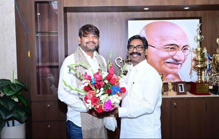 रांची: धनबाद के मेयर Sanjeev Singh ने राज्य के मुख्यमंत्री Hemant Soren से शिष्टाचार मुलाकात कर शहर के विकास से जुड़े विभिन्न मुद्दों पर चर्चा की। यह मुलाकात राजधानी Ranchi में हुई, जहां Dhanbad नगर निगम क्षेत्र की वर्तमान स्थिति और भविष्य की विकास योजनाओं पर विस्तार से बातचीत की गई।