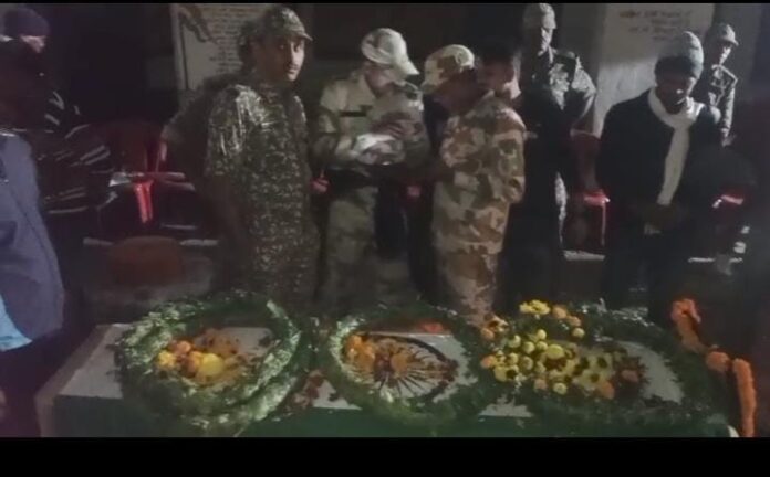 शव को रात में बालक-बालिका मध्य विद्यालय में रखा गया। सोमवार सुबह गार्ड ऑफ ऑनर के साथ अंतिम संस्कार किया गया।