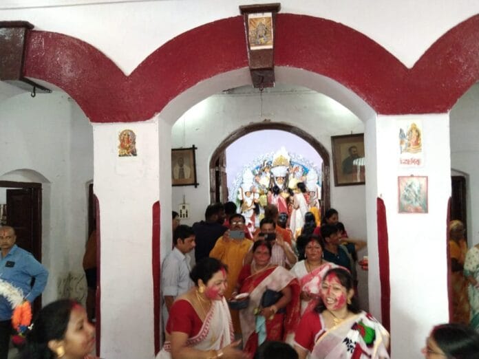 बंगाली समाज की महिलाओं के द्वारा एक विशेष प्रकार का आवाज उलू निकाली जाती है जिसे प्रत्येक शुभ अवसर पर किया जाता है माता की विदाई और सिंदूर खेला के समय बंगाली समाज की महिलाओं के द्वारा उलू निकाला गया और एक दूसरे को जमकर सिंदूर लगाया गया।
