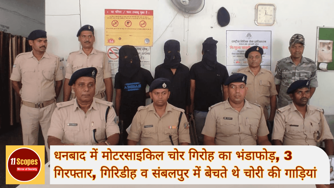 धनबाद में मोटरसाइकिल चोर गिरोह का भंडाफोड़, 3 गिरफ्तार, गिरिडीह व संबलपुर में बेचते थे चोरी की गाड़ियां