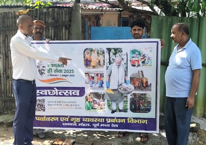 धनबाद:स्वच्छता ही सेवा – 2025 अभियान के आठवें दिन धनबाद मंडल के अंतर्गत विभिन्न रेलवे स्टेशनों एवं रेल कॉलोनियों में Reduce, Reuse, Recycle (RRR) अवधारणा को बढ़ावा देने के लिए डोर-टू-डोर जन-जागरूकता अभियान चलाया गया।