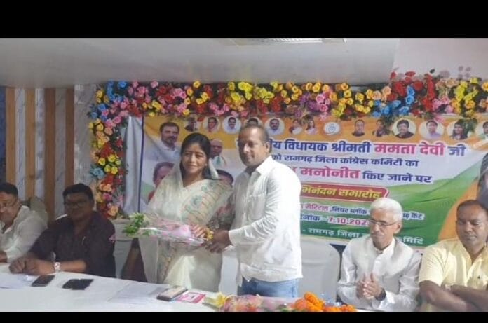 रामगढ़:राष्ट्र्रीय कांग्रेस पार्टी की वरिष्ठ नेत्री एवं रामगढ़ विधायक ममता देवी को रामगढ़ जिला कांग्रेस अध्यक्ष नियुक्त किए जाने पर आज ल मैरिटल सभागार, रामगढ़ में भव्य स्वागत समारोह का आयोजन किया गया।