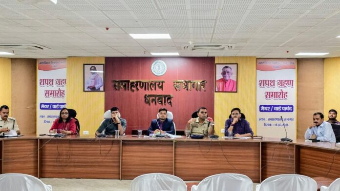 बैठक में उपायुक्त आदित्य रंजन, सिटी एसपी ऋत्विक श्रीवास्तव, नगर आयुक्त आशीष गंगवार, अनुमंडल दंडाधिकारी लोकेश बारंगे, एडीएम लॉ एंड ऑर्डर हेमा प्रसाद, जिला परिवहन पदाधिकारी दिवाकर सी द्विवेदी, डीएसपी शंकर कामती, सहायक नगर आयुक्त प्रसून कौशिक, आईआरडीए प्रबंधक राजेश कुमार के अलावा आरसीडी, पीएचईडी, जेबीवीएनएल, रेलवे, बीसीसीएल, सभी प्रखंड विकास पदाधिकारी, सभी अंचल अधिकारी, एनएचएआई धनबाद व दुर्गापुर सहित अन्य विभागों के पदाधिकारी मौजूद थे।