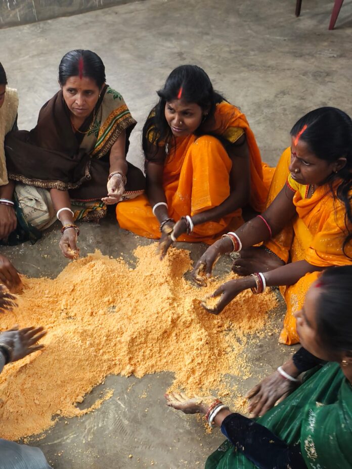 OSF अध्यक्ष रीना गोराई द्वारा प्रशिक्षण की निगरानी करते हुए गुणवत्तापूर्ण पलाश गुलाल निर्माण सुनिश्चित किया गया।