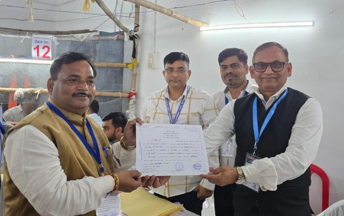 धनबाद: वार्ड संख्या 26 से विकास रंजन हुए विजय। उन्हें निर्वाची पदाधिकारी नारायण राम ने प्रमाण पत्र सौंपा।